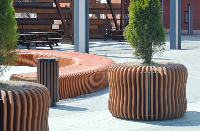 Elegant, weather-resistant installations for public, commercial, or private use - from benches to lamp posts and planters.